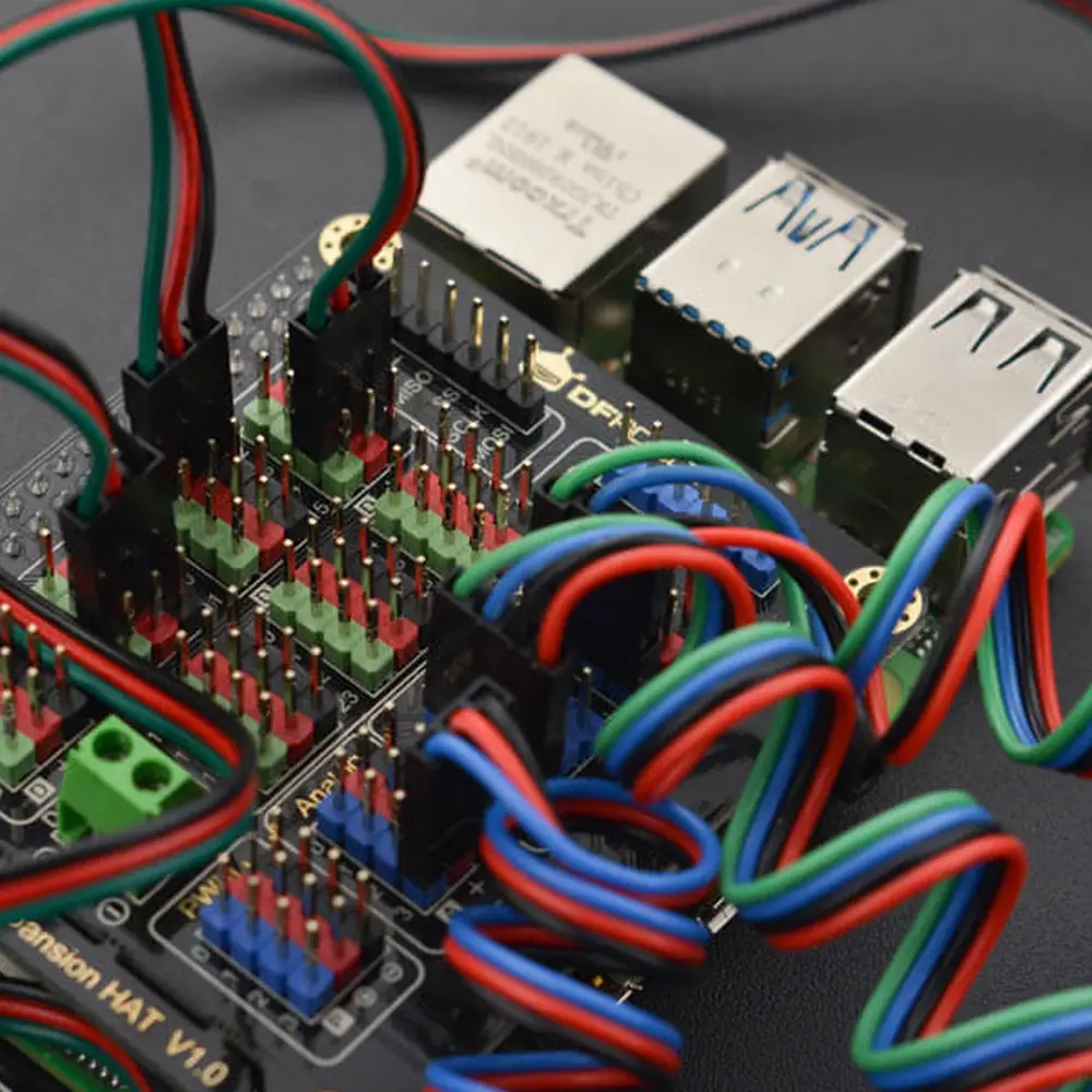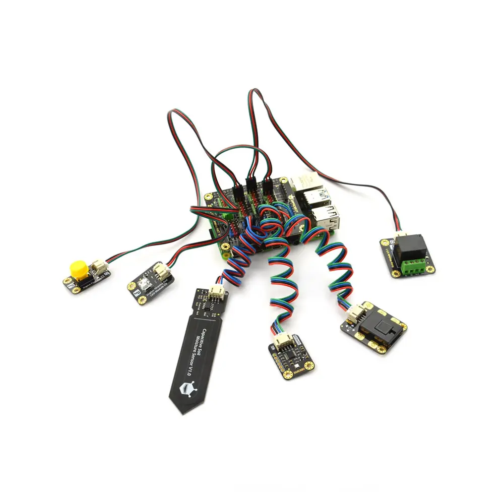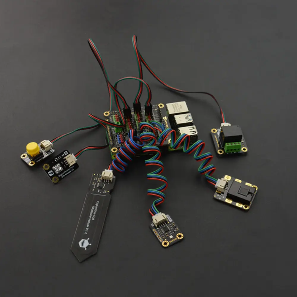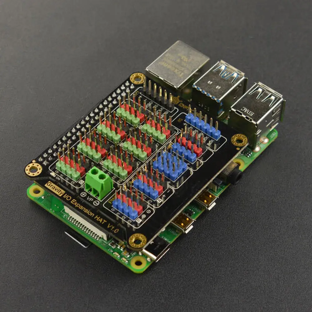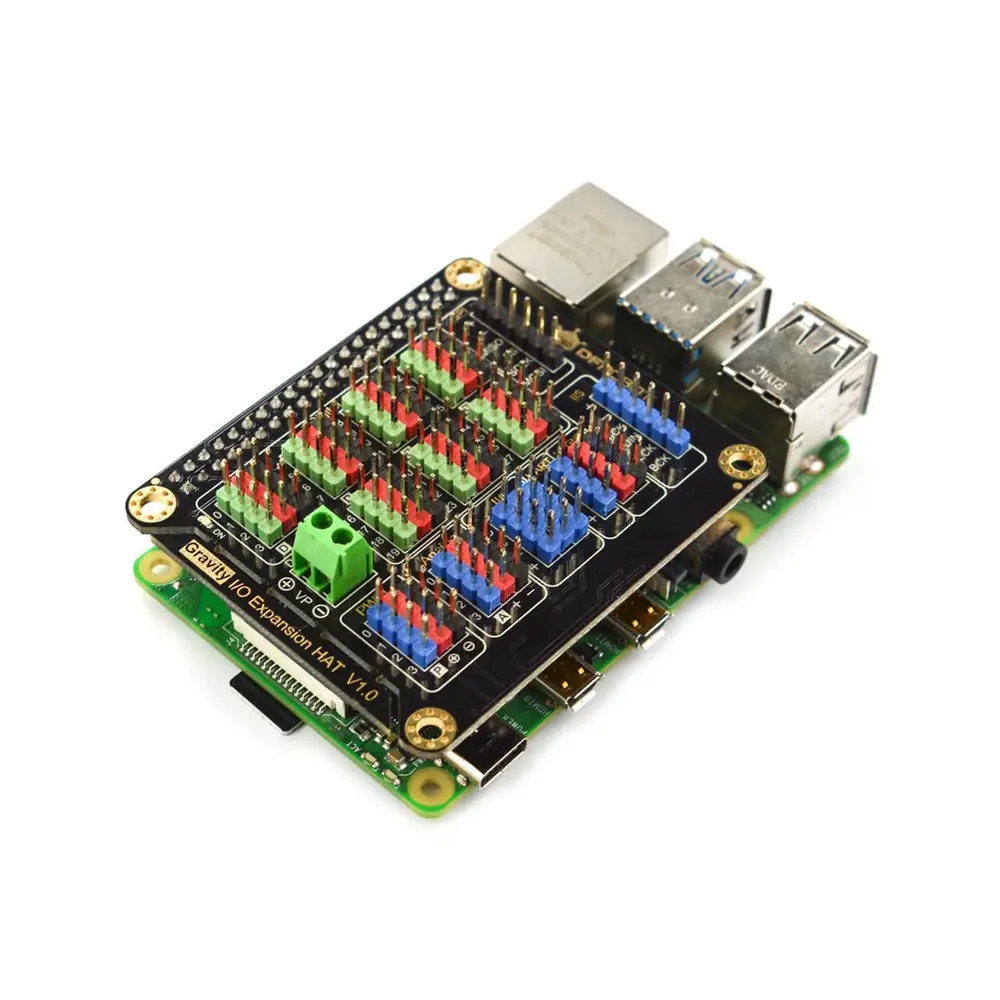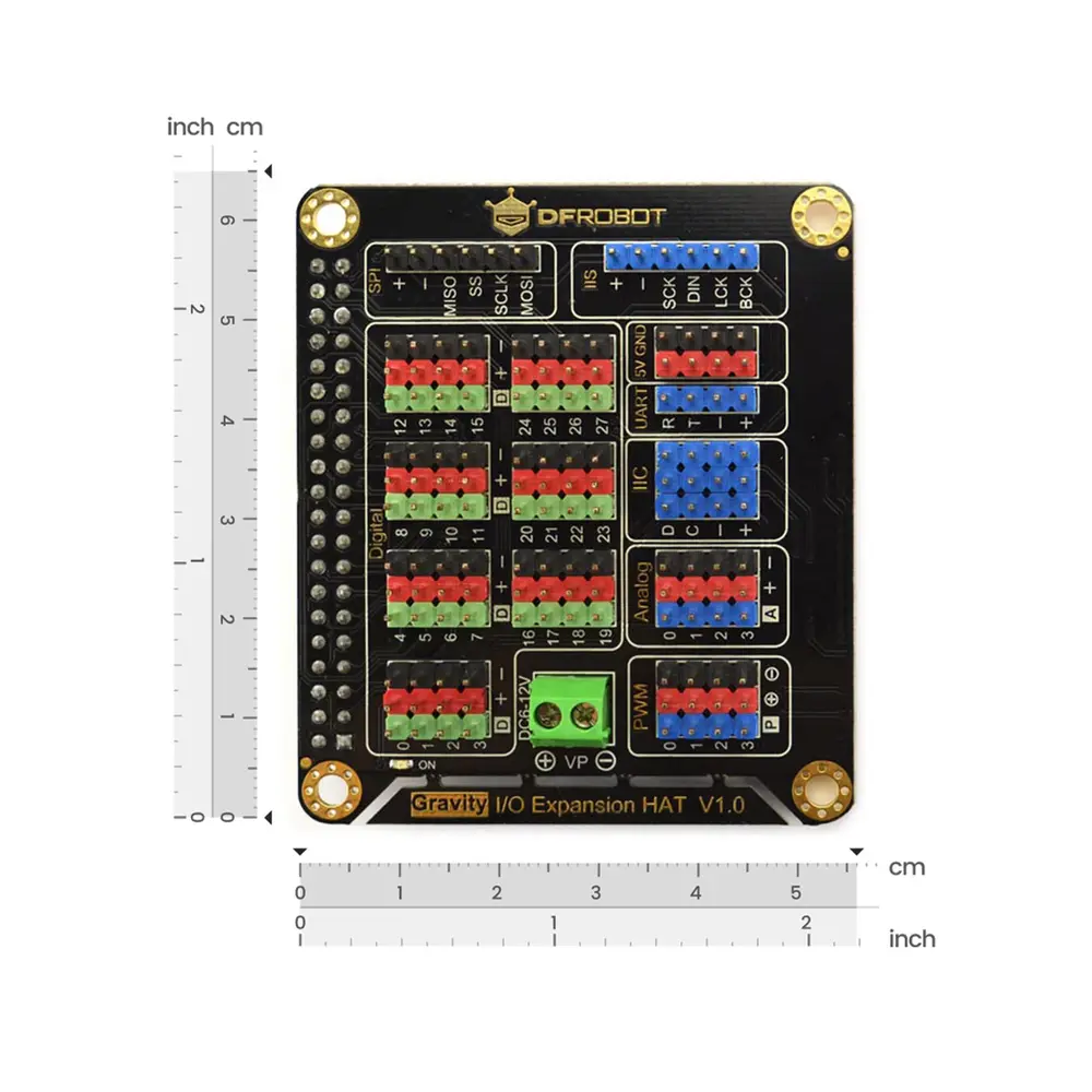 This IO Expansion HAT from DFRobot enhances the functionality of your Raspberry Pi 5, Raspberry Pi 4B, and Raspberry Pi 3B+. Designed to simplify connectivity, it provides access to all of the Raspberry Pi's IO ports, including digital, analog, PWM, I2C, UART, SPI, and IIS. Its compatibility with the DFRobot Gravity Series means users can focus more on building their projects rather than getting tangled in complex wiring.