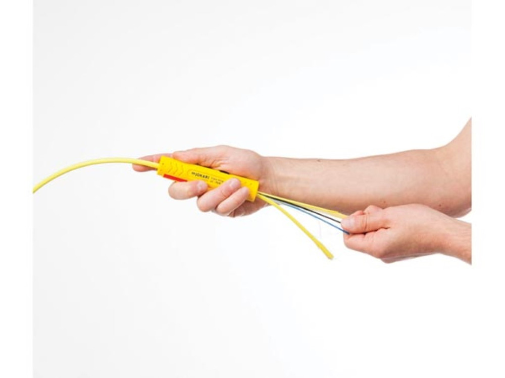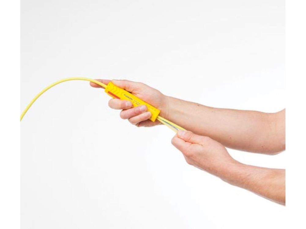 This tool simplifies the process of exposing specific layers of cables, making cable preparation tasks seamless. It's perfect for situations requiring careful handling, such as setting up high-speed internet or network cables in office environments.