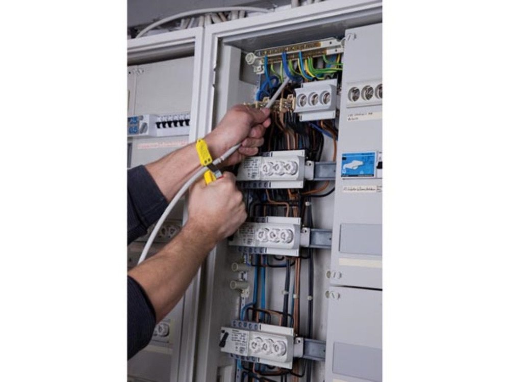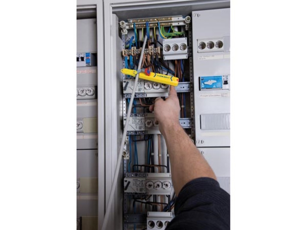 The ergonomic handle reduces hand fatigue, making long projects manageable and efficient. Equipped with an integrated length scale, this tool allows consistent strip lengths for streamlined connections.