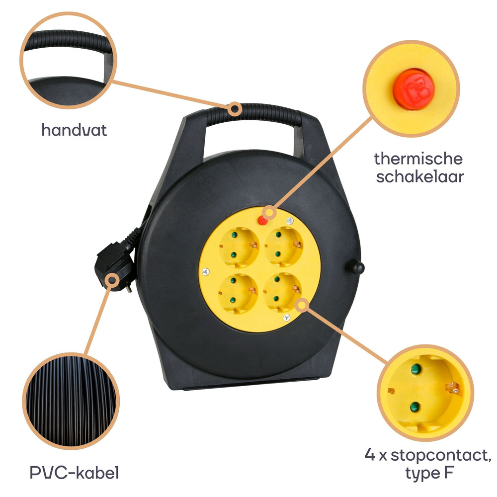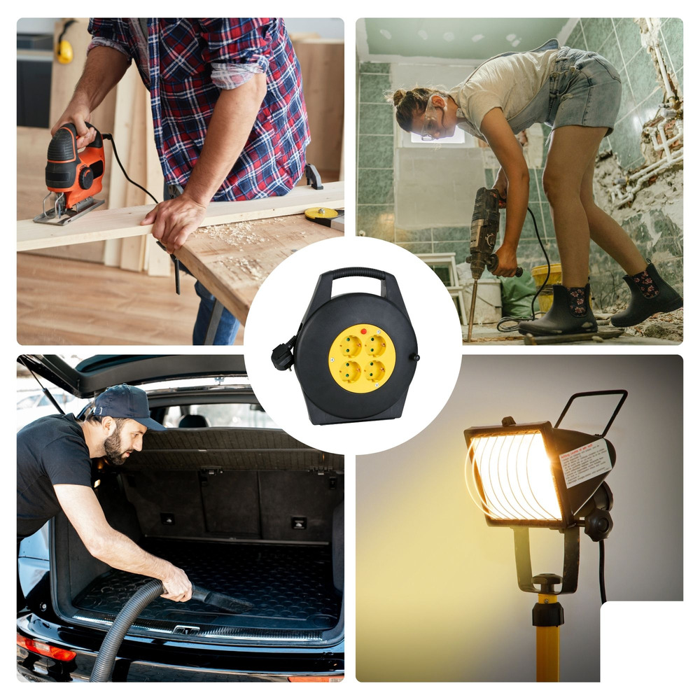 Equipped with four grounded sockets, this cable reel is designed to keep multiple devices powered simultaneously, making it ideal for diverse environments. The grounded feature ensures added safety, protecting your equipment from electrical surges.