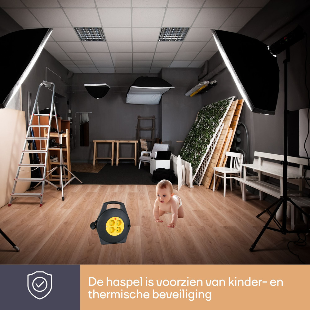 Crafted with a robust 3G1.5 cable, it delivers optimal performance with reduced voltage drop, ensuring consistent power supply across all connected devices. The cable reel wind-up mechanism minimizes tangling, offering effortless storage and maneuverability.