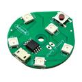 The PCB is 36mm in diameter and is provided with a single M3 mounting hole in the centre of the board. The USB connector projects approximately 2mm from the end of the PCB. The underside of the PCB is flat, allowing for simple mounting within your designs. The 5 RGB LEDs are evenly placed on a 72-degree separation around the centre hole.