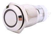 Metal button with a mounting diameter of 16mm. This button has a blue LED illuminated ring, which works on 12V via a separate circuit. In addition to the 2 LED connections, this button has 3 contact points, NO, Common and NC. The circuit remains switched on as long as the button is pressed, when the button is released, the circuit is also closed again (momentary). This button is suitable for a maximum current of 3A with a voltage of 250VAC.