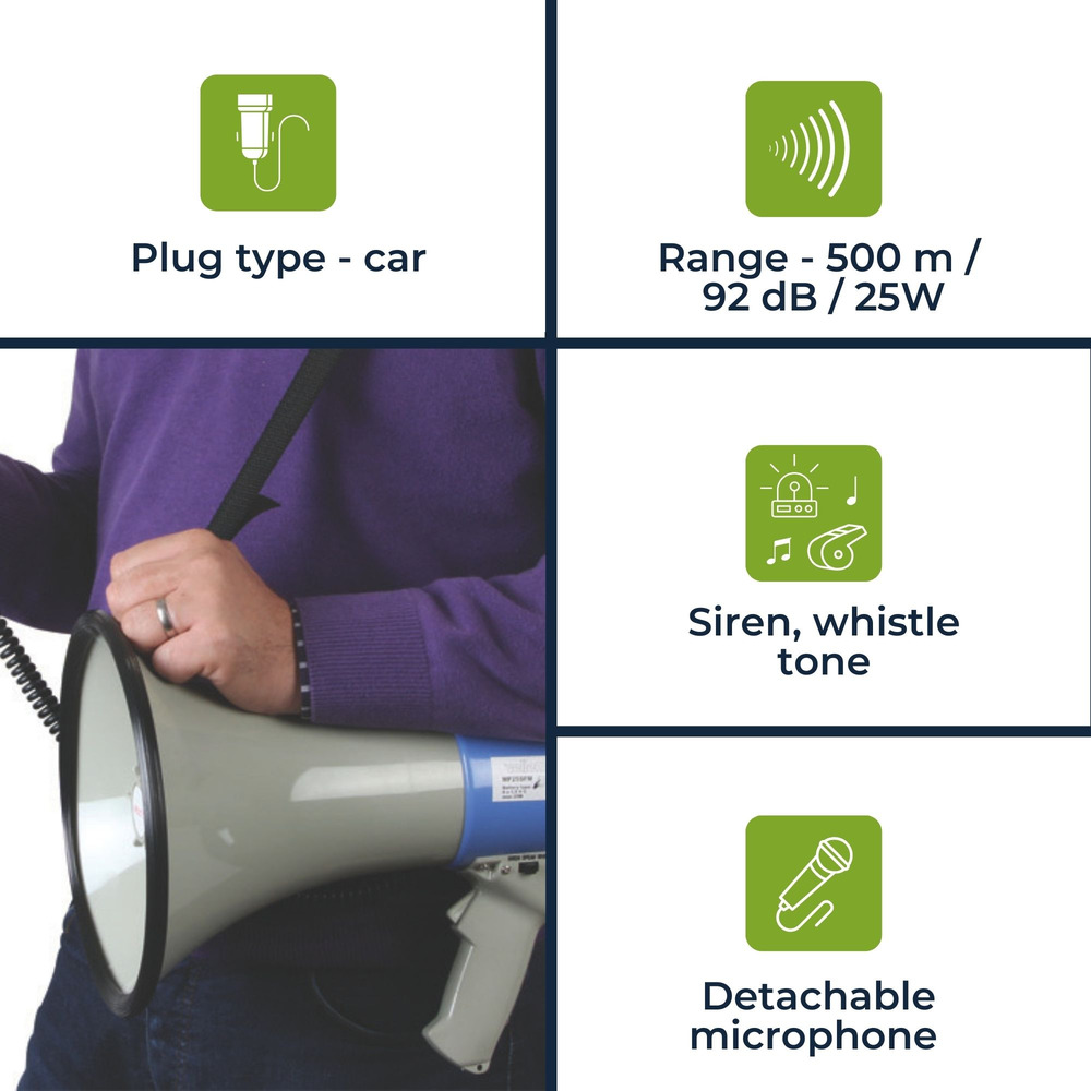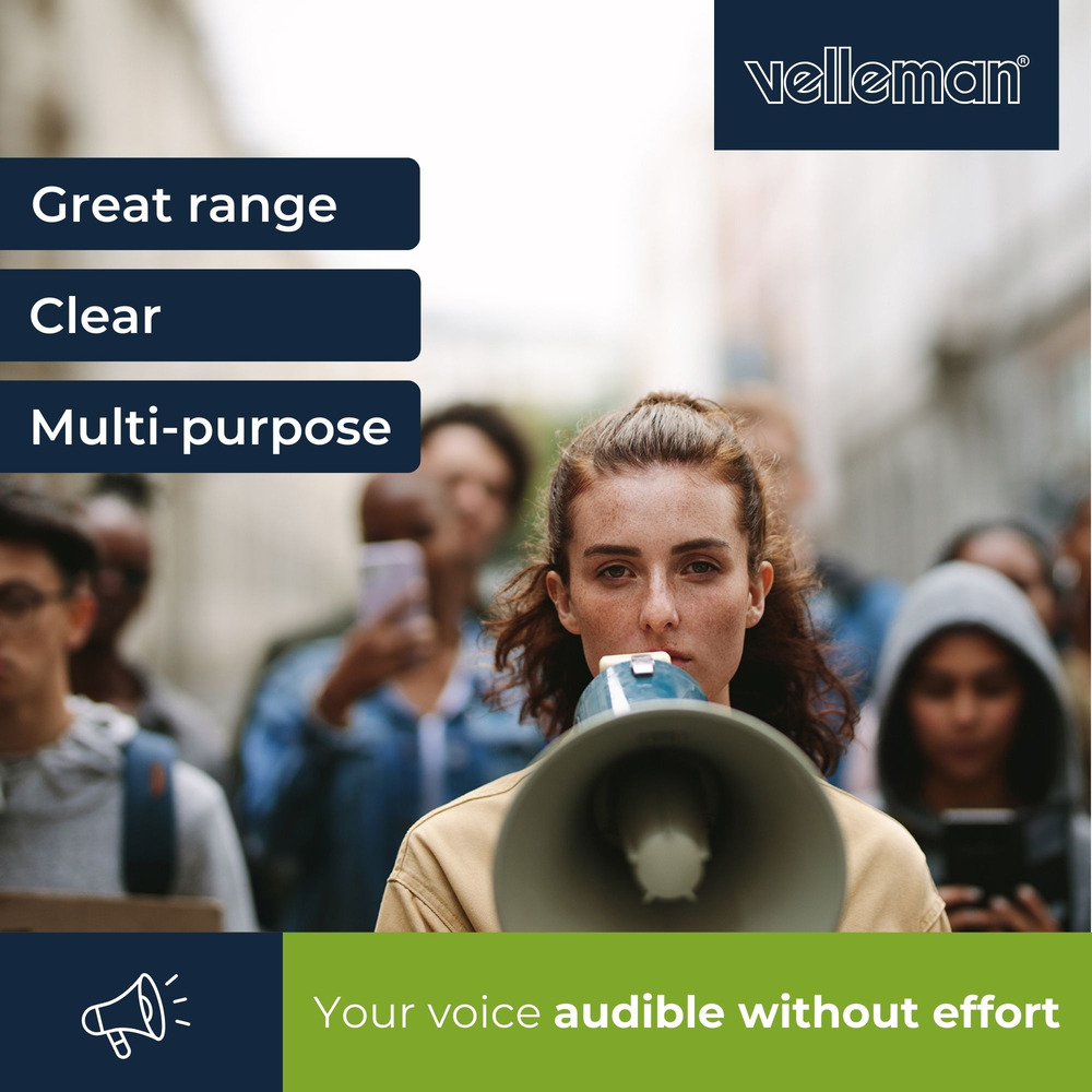 The KRACHTIGE MEGAFOON - 25 W offers powerful sound amplification, ensuring your voice carries with clarity and authority. Equipped with a detachable, anti-feedback microphone, it delivers uninterrupted broadcasts even in bustling environments.