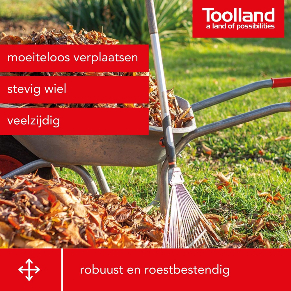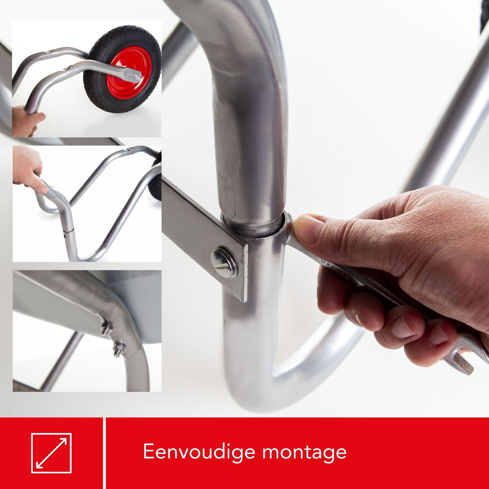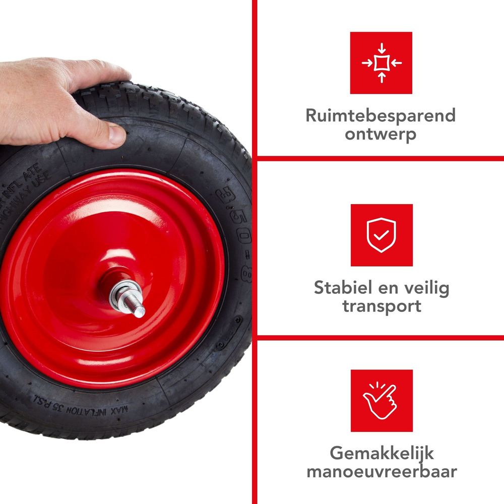 Effortlessly transport heavy loads with the Kruiwagen, featuring an 85-liter capacity. Its robust construction ensures durability, while the ergonomic handle offers a comfortable grip.