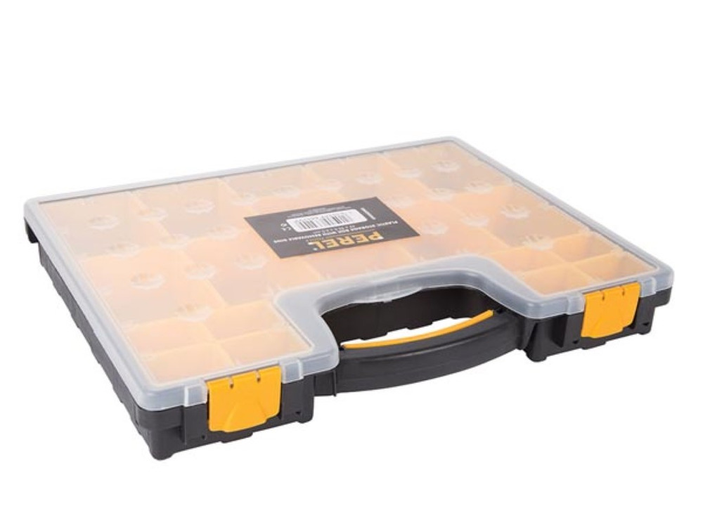 This versatile kunststof opbergdoos is designed for efficient organization with its removable trays, measuring 420x335x65 mm and offering a generous 9.1-liter capacity.