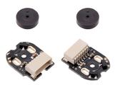 Magnetic Encoder Pair Kit with Side-Entry Connector for Micro Metal Gearmotors, 12 CPR, 2.7-18V. Add quadrature encoders to your micro metal gearmotors (extended back shaft version required) with this kit that uses a magnetic disc and hall effect sensors to provide 12 counts per revolution of the motor shaft. The sensors operate from 2.7 V to 18 V and provide digital outputs that can be connected directly to a microcontroller or other digital circuit. These encoders have a side-entry, 6-pin male JST SH-type connector, and we have cables that work with them available in several lengths (12 cm, 30 cm, and 75 cm). This module is compatible with all of the dual-shaft micro metal gearmotors we carry, including the HPCB versions.This kit includes two dual-channel Hall Effect sensor boards and two 6-pole magnetic discs that can be used to add quadrature encoding to two micro metal gearmotors with extended back shafts (motors and cables are not included with this kit). The encoder board senses the rotation of the magnetic disc and provides a resolution of 12 counts per revolution of the motor shaft when counting both edges of both channels. To compute the counts per revolution of the gearbox output shaft, multiply the gear ratio by 12. This compact encoder solution fits within the 12 mm × 10 mm cross section of the motors on three of the four sides, and it extends 4.2 mm past the edge of the fourth side.The encoder board is designed to be soldered directly to the back of the motor, with the back shaft of the motor protruding through the hole in the middle of the circuit board. One way to achieve good alignment between the board and the motor is to tack down the board to one motor pin and to solder the other pin only when the board is flat and well aligned. Be careful to avoid prolonged heating of the motor pins, which could deform the plastic end cap of the motor or the motor brushes.