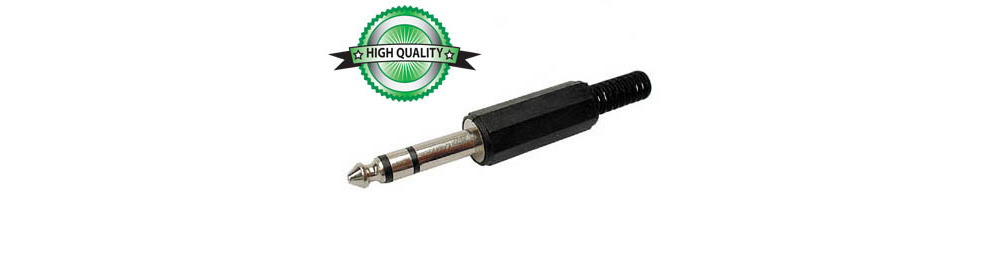 The MANNELIJKE 6.35mm stereo jack features a robust plastic black housing, ensuring longevity and reliable performance across various applications.