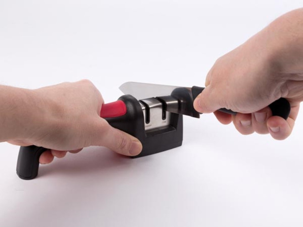 The messenslijper offers dual sharpening surfaces of diamond and ceramic, ensuring precise honing for every blade type.