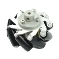 Measuring 65mm in diameter, each wheel comprises nine small rollers crafted from robust plastic and coated with high-friction silicone rubber. This composition provides remarkable traction and impact resistance, ensuring stable and reliable performance across diverse surfaces. These features position the Mecanum wheels as a versatile and durable choice for any dynamic robotic application.