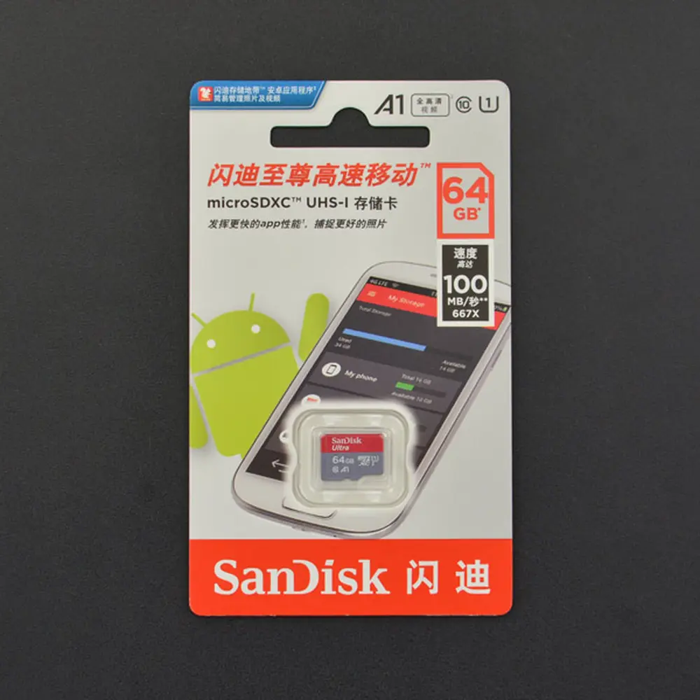 The 64GB MicroSD memory card offers a swift, secure, and ample storage solution for a wide range of devices. With the advanced SanDisk A1 chip, it promises read speeds of up to 100MB/s, effectively minimizing transfer times for audio, video, and various file types. Featuring UHS-1 support, this memory card is designed to handle substantial data efficiently, ensuring seamless performance across different applications.