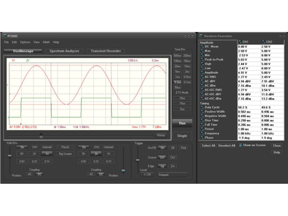 De mini 2-kanaals pc-oscilloscoop met usb-aansluiting is een compacte oplossing voor precieze metingen. Deze kleine en makkelijk te gebruiken oscilloscoop biedt hetzelfde functionality als grotere modellen met een indrukwekkende bandbreedte van 500 kHz (±3 dB).