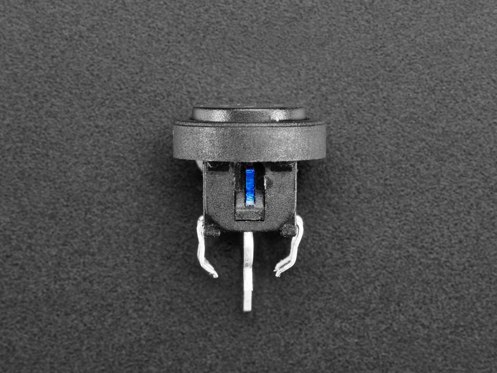 With dimensions similar to 6mm tactile switches, it seamlessly fits into breadboards. The additional two pins connect to the anode and cathode of the LED, allowing it to emit light through the top.