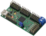 The twenty-four-channel Mini Maestro raises the performance bar for serial servo controllers with features such as a native USB interface and internal scripting control. Whether you want high-performance servo control (0.25μs resolution with built-in speed and acceleration control) or a general I/O controller (e.g. to interface with a sensor or ESC via your USB port), this tiny, versatile device will deliver. The fully assembled version ships with header pins installed.