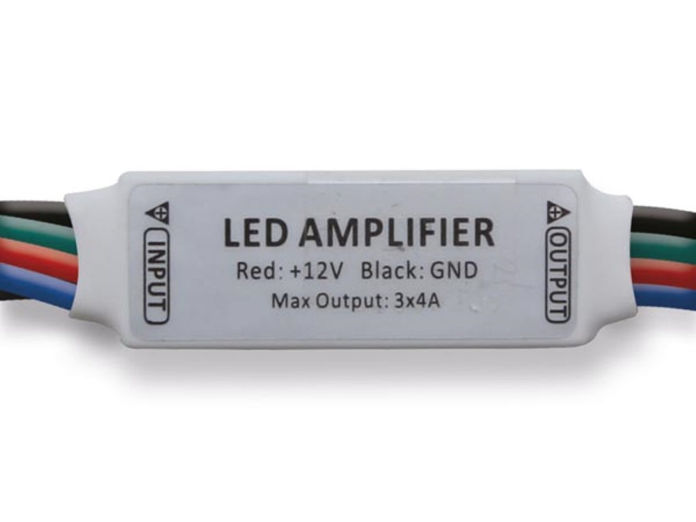 The Mini RGB-versterker/repeater boosts your LED lighting experience, ensuring vibrant colors and consistent brightness across all applications. Compact and efficient, it's designed to extend the length of RGB LED strip lights by reinforcing the signal.