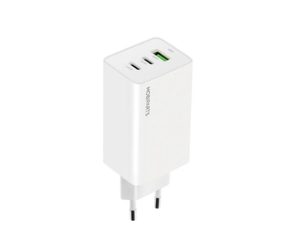 Experience next-level charging efficiency with the Mobiparts GaN Wall Charger. This compact powerhouse features two USB-C ports and a USB-A 3.0 QC port, delivering a total output of 65W. Whether you're topping up a smartphone, tablet, or laptop, it handles multiple devices seamlessly.