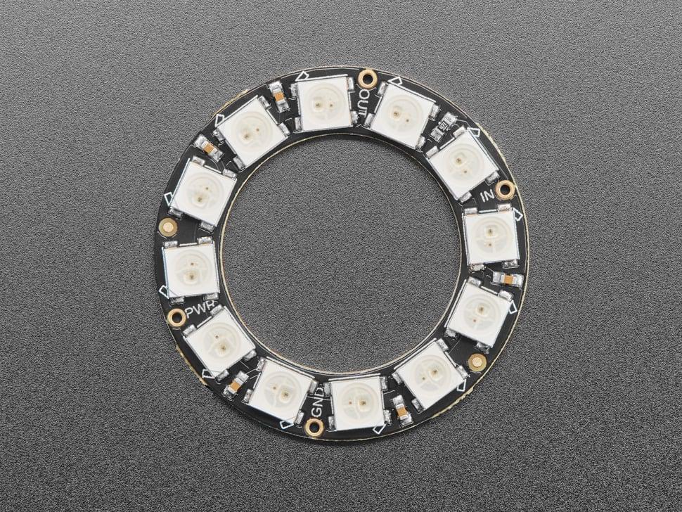 Round and round and round they go! 12 ultra-bright smart LED NeoPixels form a perfect circle with a 1.5" (37mm) outer diameter. These rings are chainable, allowing you to connect the output pin of one to the input pin of another and control numerous rings using just a single microcontroller pin!