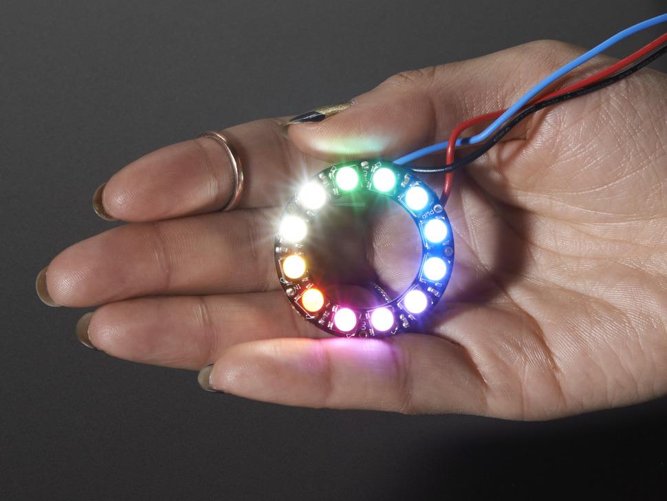 NeoPixels are known for their smooth color transitions and use an 800 KHz protocol requiring specific timing. The embedded microcontroller makes setup straightforward, with no need for external resistors.