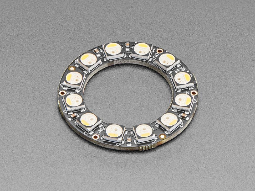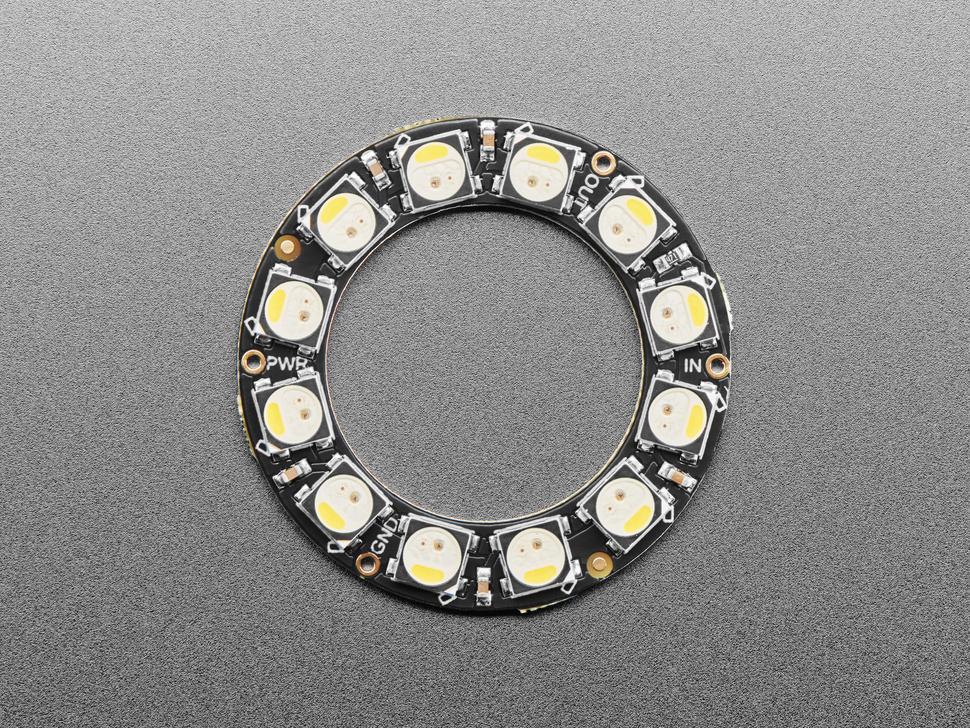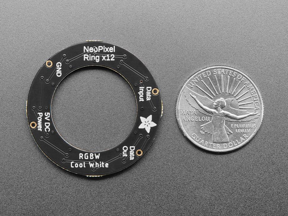 Experience vibrant illumination with the 12 LED RGBW NeoPixel Ring in Cool White. This ring boasts red, green, blue, and white LEDs, delivering exceptional lighting effects in a compact form. At 1.45" (37mm) in outer diameter, it is an ideal choice for dynamic displays and creative projects.