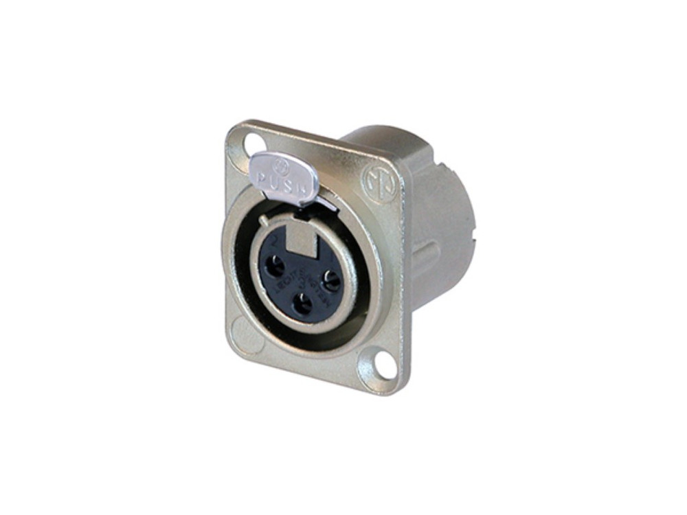 The NEUTRIK XLR Chassisdeel offers a reliable connection with its 3-polig female design, perfectly suited for professional applications. Its robust, vernikkelde housing ensures durability while maintaining a sleek appearance.