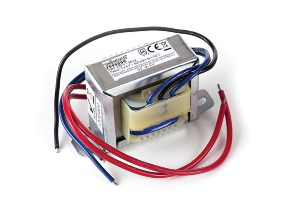 The Open-Chassis Transformer delivers reliable power with a 9 VA capacity and dual 9 V~ outputs at 500 mA max. This transformer ensures stability and efficiency, suitable for diverse electronic applications.