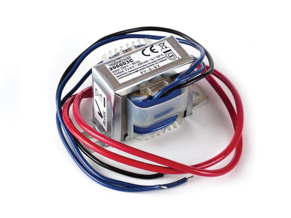 The Open-Chassis Transformer offers a robust 3 VA power capacity with dual voltage outputs of 2 x 6 V~ and supports a maximum of 250 mA current. This ensures reliable energy conversion for both simple and complex circuits.