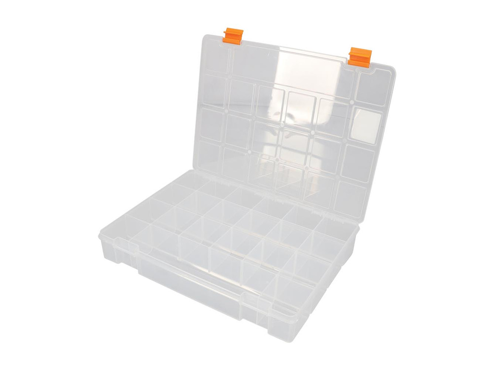 Equipped with two sturdy plastic closures, it ensures secure storage, even when on the move. Its clear design allows for quick identification of contents, making it a reliable solution for keeping essentials within reach. Ideal for small parts, tools, or crafting materials, this box simplifies sorting with ease.