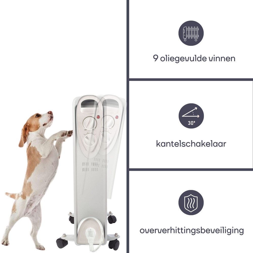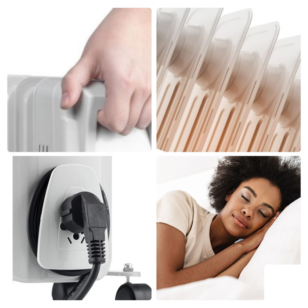 A cable holder keeps the power cord neatly stored, ensuring tidy transportation and use. An efficient heating solution, this radiator combines practicality with safety and ease of use.