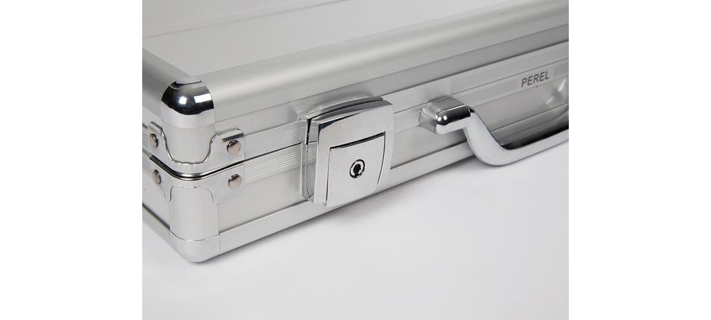 This aluminium storage case by Perel measures 425 x 305 x 80 mm, offering a capacity of 10.3 liters, perfect for storing and transporting a laptop safely.