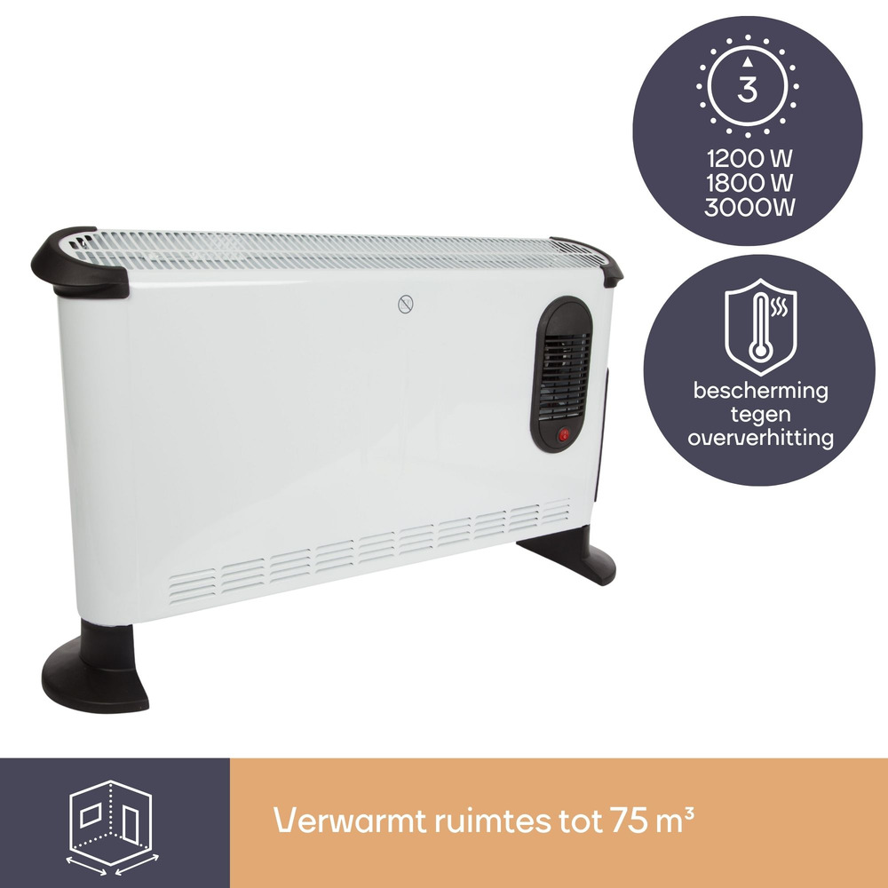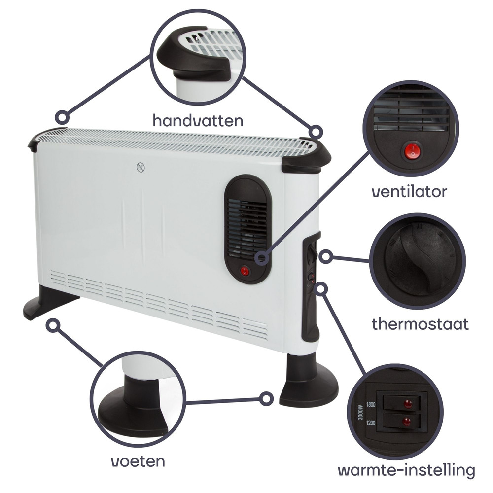 | Heat settings | 1200 W, 1800 W, 3000 W |