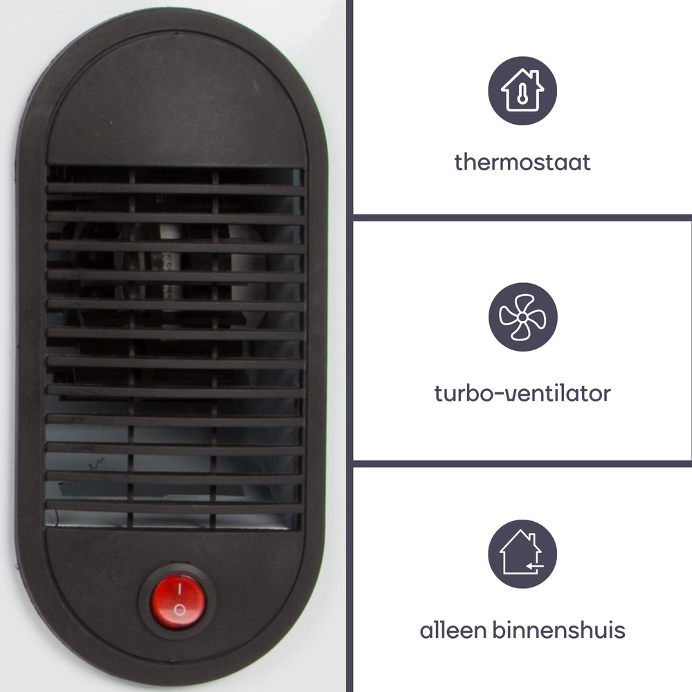 Equipped with a turbo fan, it ensures rapid air circulation, distributing warmth evenly throughout the room. The overheat protection mechanism automatically powers off the unit upon reaching excessive temperatures, ensuring safety and peace of mind.