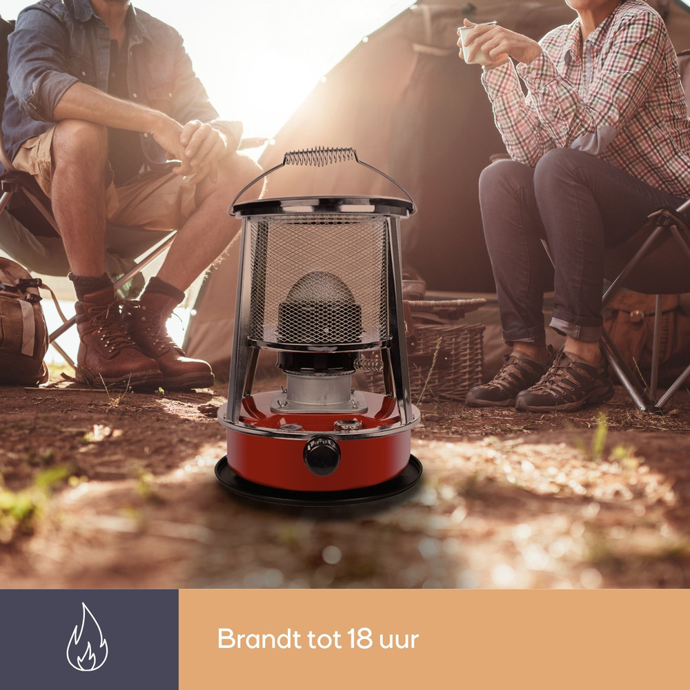 De kachel is voorzien van een royale 4,6 L tank, waardoor langdurig gebruik mogelijk is zonder frequent bijvullen. Een ingebouwde wiek zorgt voor een gelijkmatige en stabiele vlam, wat betrouwbare warmteafgifte garandeert.