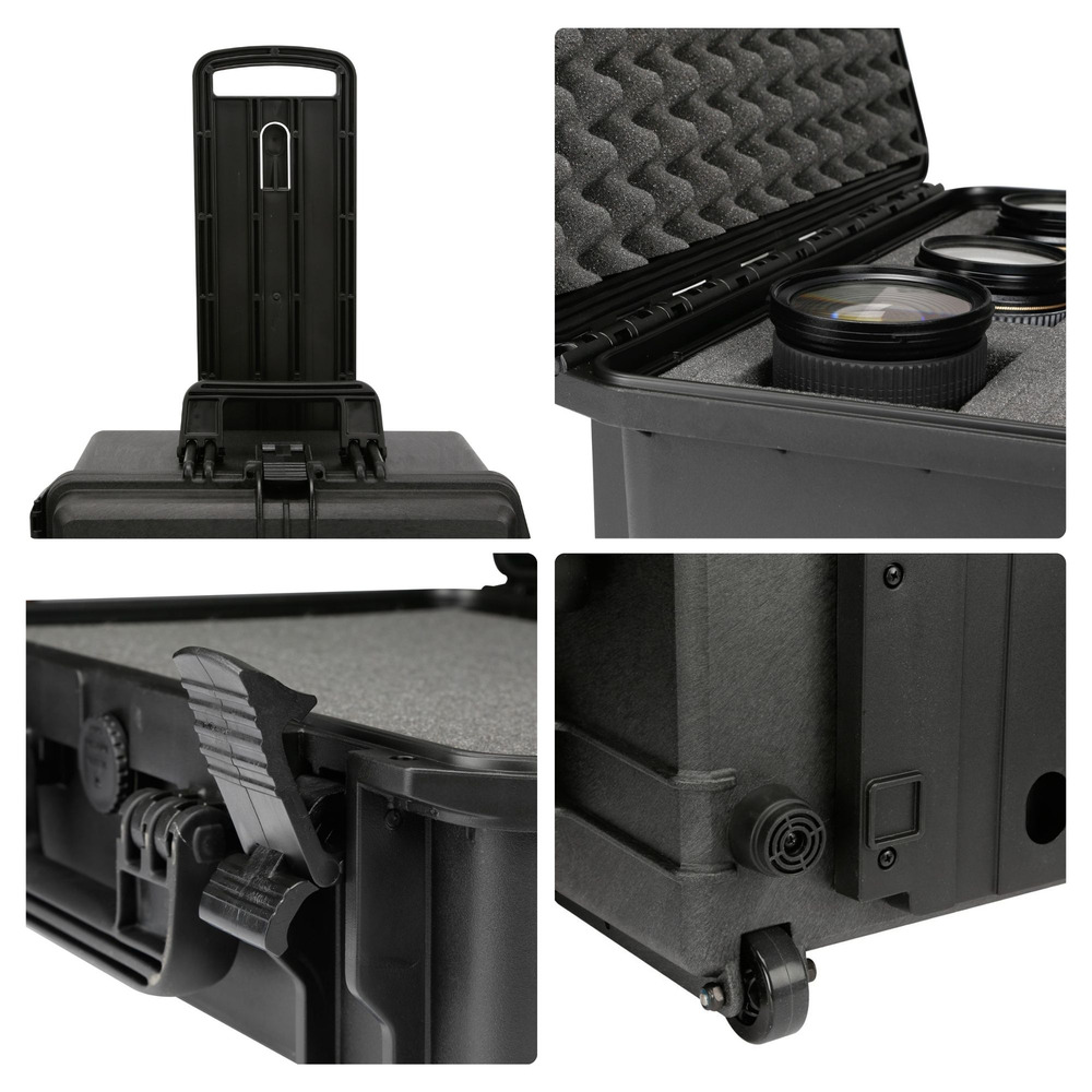 Met vier stevige sloten biedt de koffer extra klemkracht en zekerheid, zodat je met een gerust hart onderweg bent. De koffer is makkelijk verplaatsbaar dankzij het uitschuifbare handvat en de ingebouwde wieltjes, waardoor hij ook als trolley kan worden gebruikt. Vervoer breekbare of kostbare items met vertrouwen en gemak, wetende dat ze optimaal beschermd zijn.