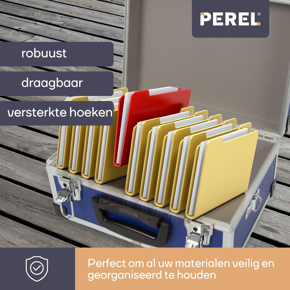 Deze Perel opbergkoffer met aluminium randen is ontworpen voor veelzijdig gebruik en biedt optimale bescherming voor uw gereedschap met een inhoud van 11,4 liter.