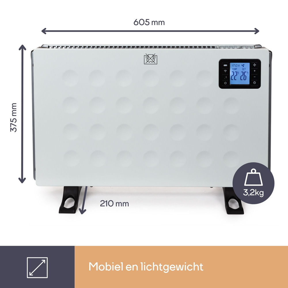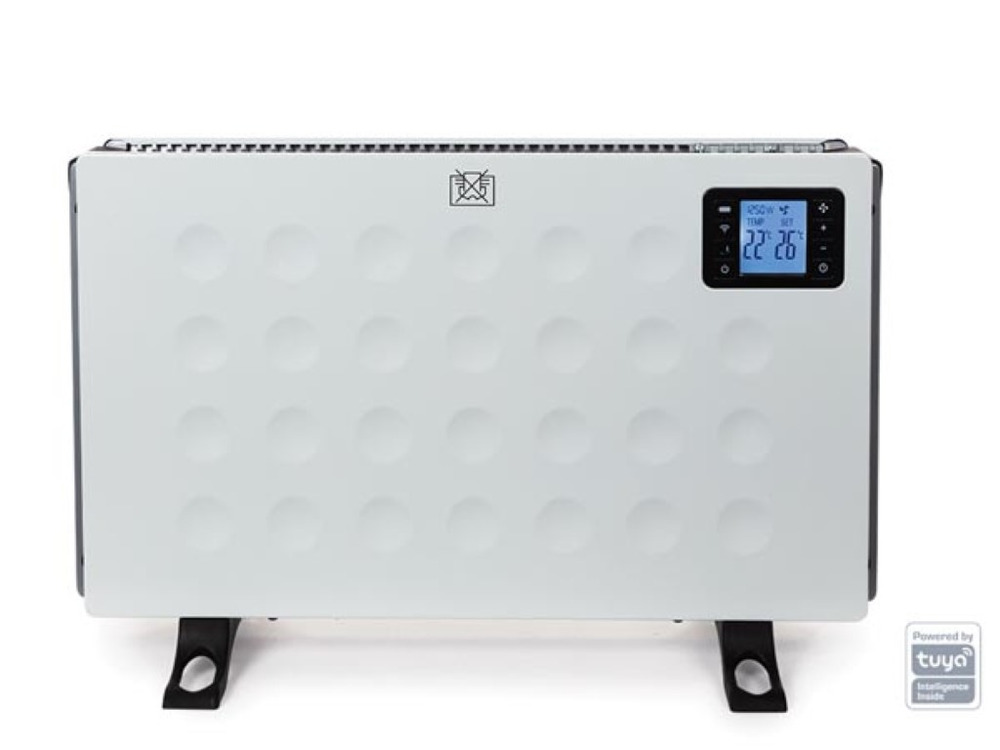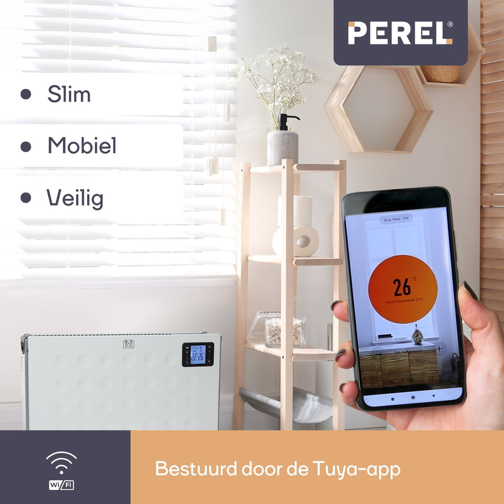 The Perel smart convector, perfect for auxiliary heating, can be operated remotely using the Tuya app or directly on the device. With a power output of 2000 W, it heats up quickly. It features 3 heat settings, a thermostat, and a 24-hour timer for customizable comfort. The overheat protection ensures automatic shutdown if it becomes too hot, ensuring safety and peace of mind.
