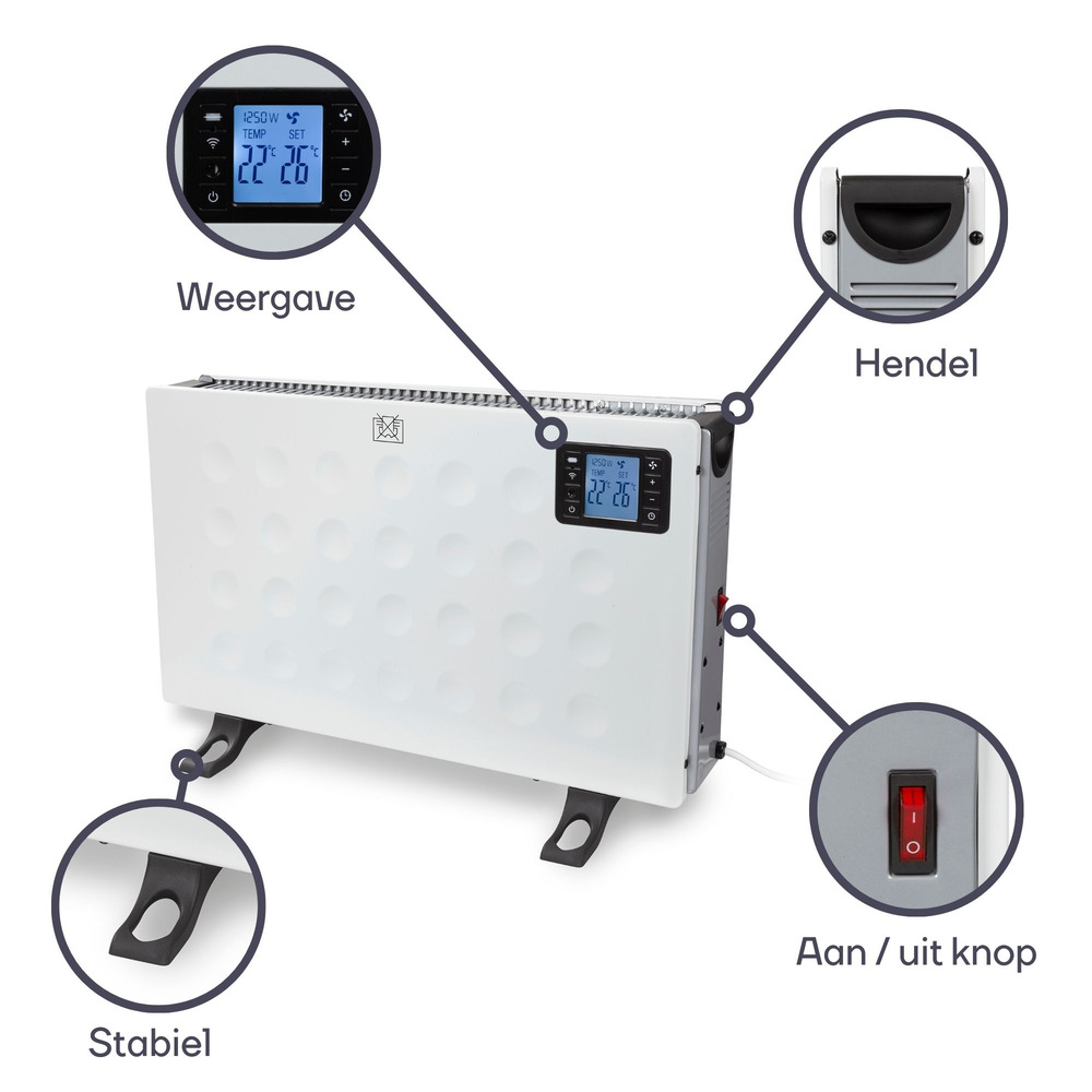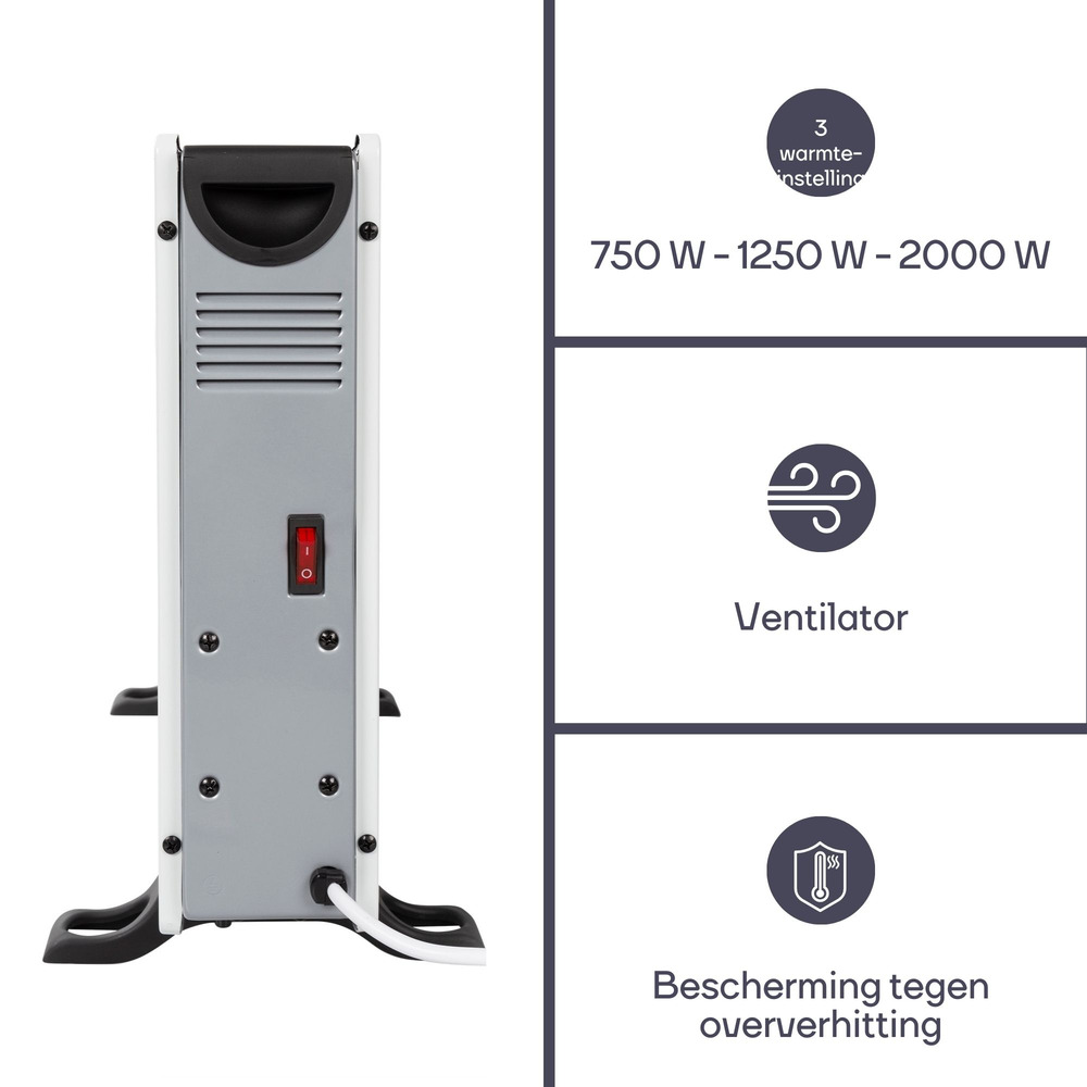 | Heat settings | 750 W, 1250 W, 2000 W |
