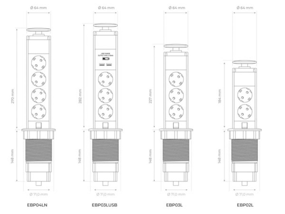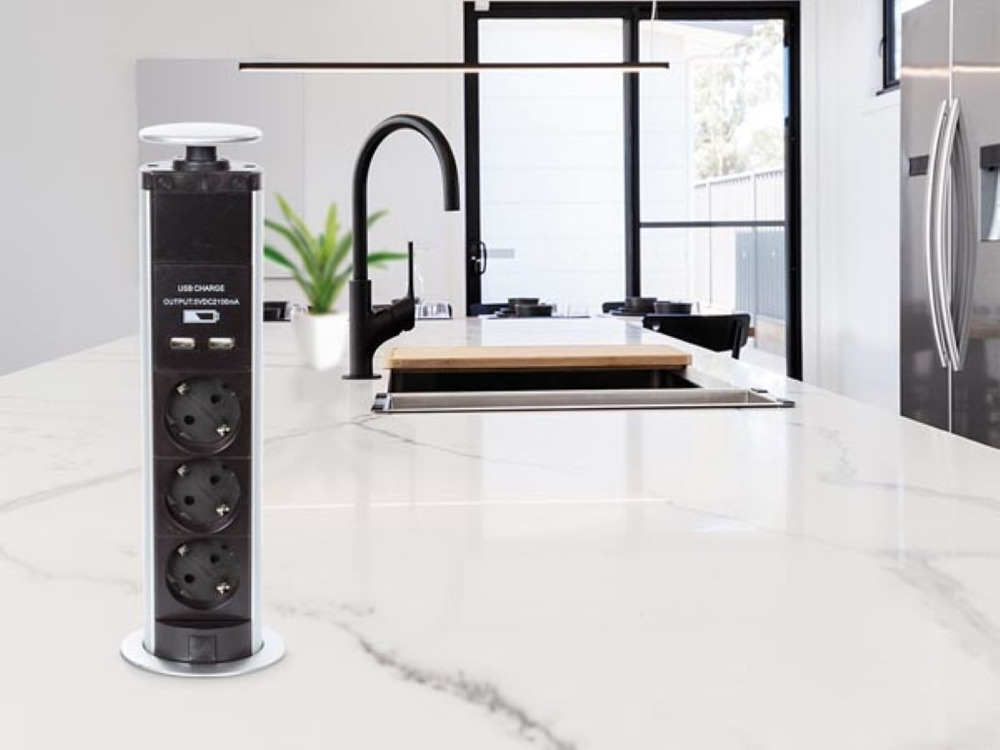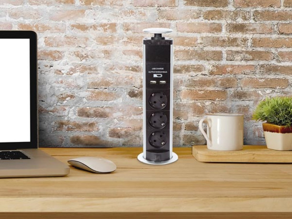 Compactly designed to fit in kitchens, offices, and workstations, it seamlessly conceals itself when not in use, maximizing countertop space. Built with safety in mind, the grounded outlets ensure secure and safe connectivity.