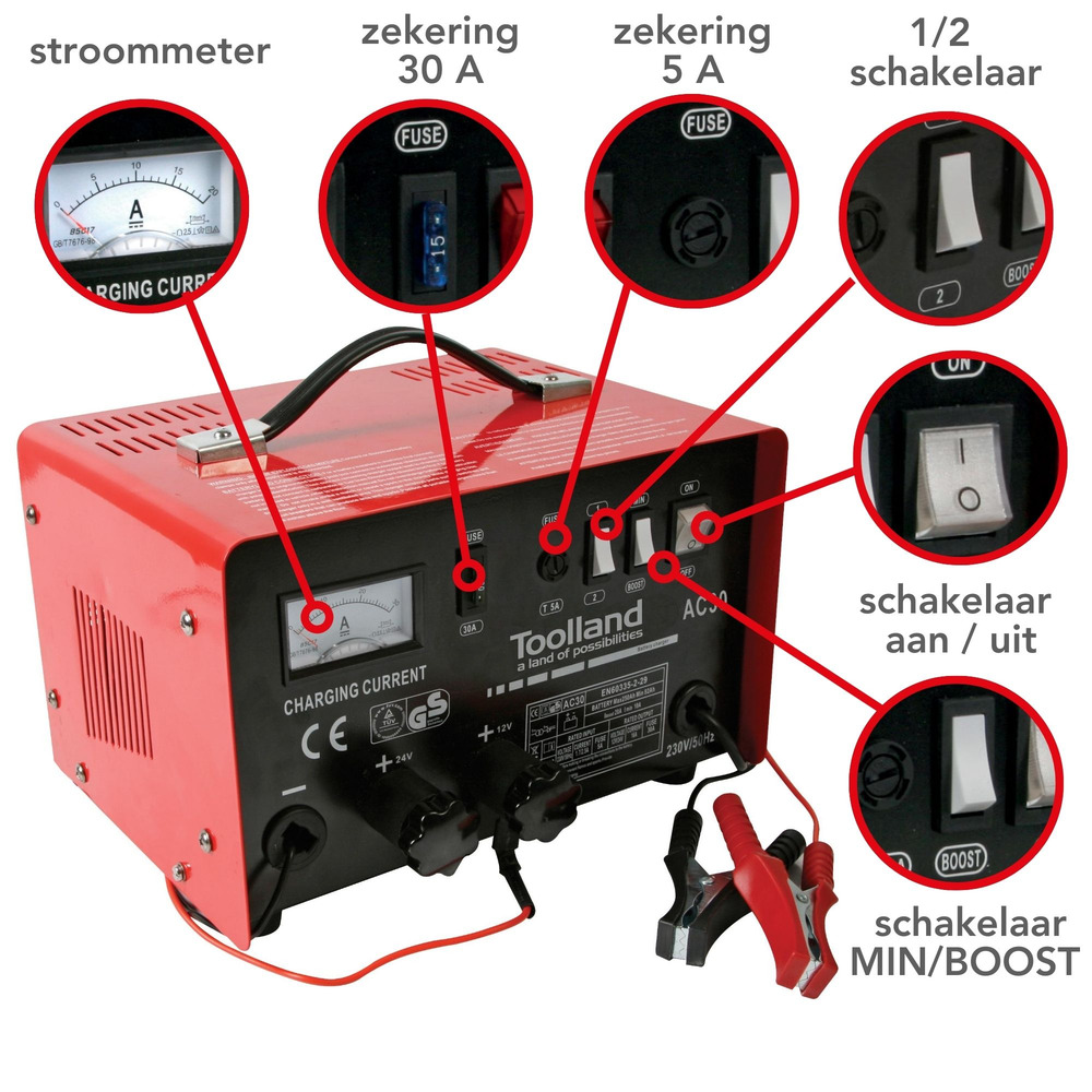 | Type 'charge' | 12V gel batteries, 12V lead-acid batteries, 24V gel batteries, 24V lead-acid batteries |