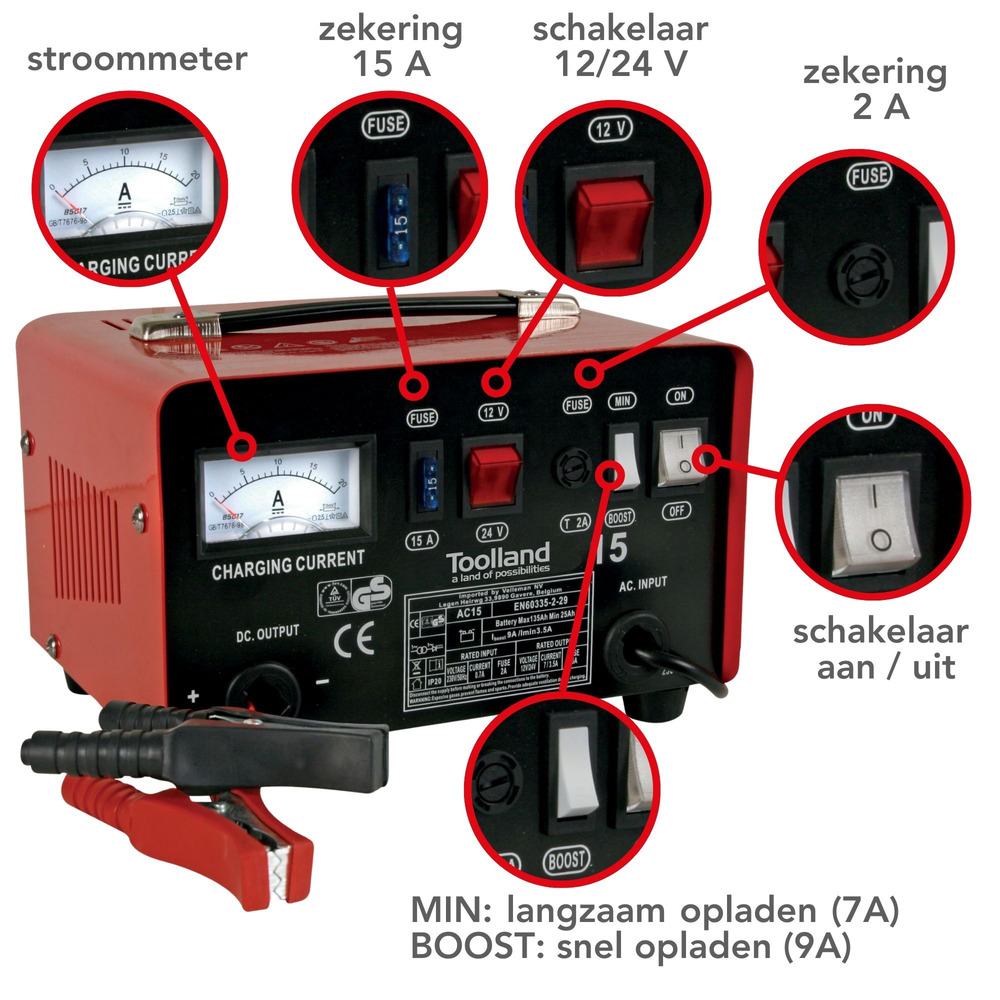 This portable single-phase charger is designed for 12/24V lead-acid batteries, featuring an advanced boost function with a robust 9A current. Whether recharging a car or maintaining marine batteries, it ensures reliable performance.