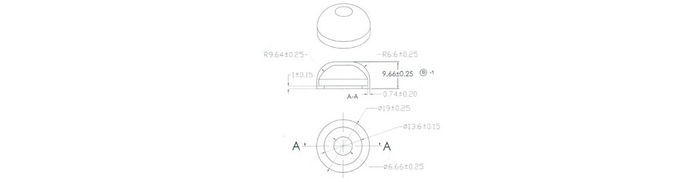 This plastic cap is precision-crafted for the miniature push button switches R1396R, R1396W, and R1396B, ensuring a perfect fit and enhanced durability.
