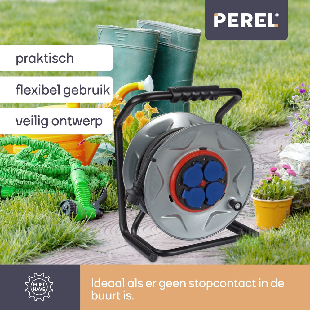 With a robust 3G2.5 cable specification, it effortlessly supports high-powered devices, ensuring optimal performance without compromising on safety. Featuring four grounded sockets, this cable reel provides versatile use, allowing multiple devices to be plugged in simultaneously.