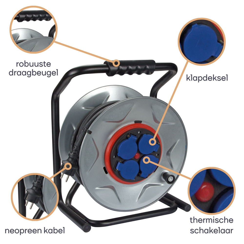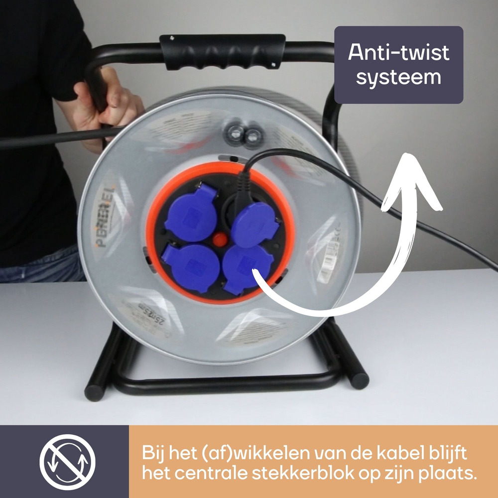 The Professionele Neopreen Kabelhaspel is meticulously engineered for durability and efficiency. Spanning 25 meters, this premium cable reel offers a seamless connection in any environment with its anti-twist technology.