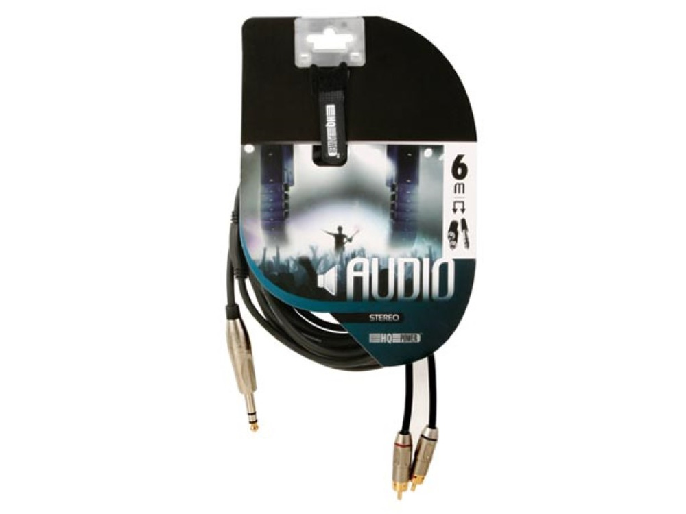 The RCA-JACK cable offers impeccable stereo sound transmission through dual RCA male connectors to a 6.35 mm jack, ensuring high-quality audio performance over a span of 6 meters.