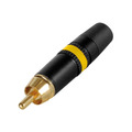 The RCA-Stekkker with a striking yellow ring ensures superior audio connectivity and crystal-clear sound transmission. Gold-plated for reduced signal loss, its robust design resists corrosion, promising longevity and dependable performance.
