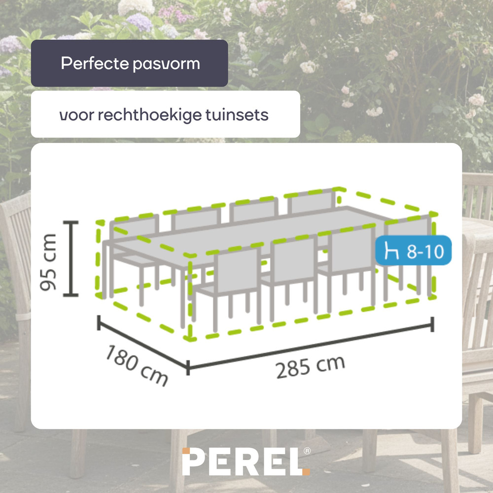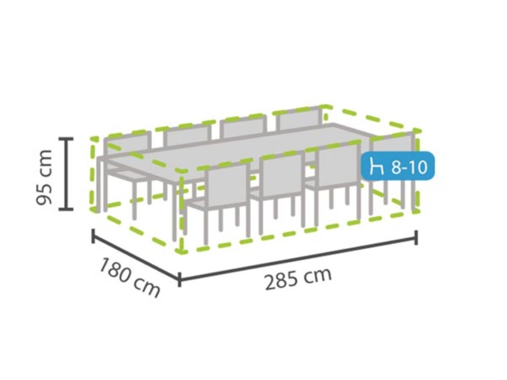 Meticulously designed to protect your rectangular garden set, this cover measures 285x180x95cm, offering a reliable shield against the elements.