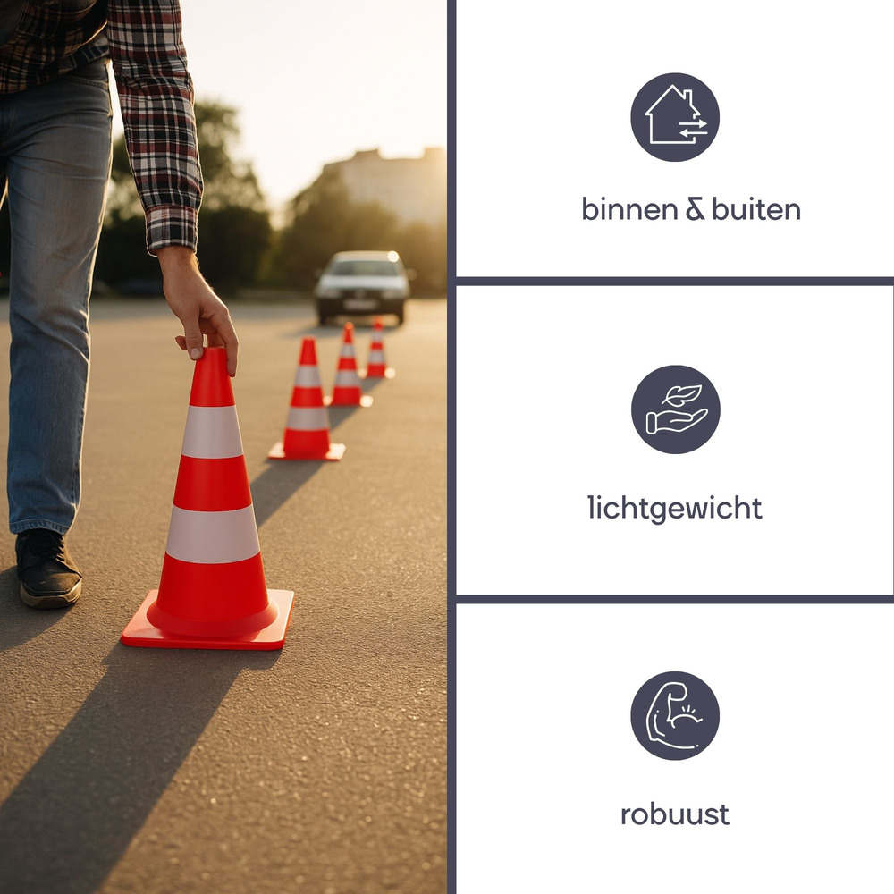 This cone is suitable for both indoor and outdoor environments, providing adaptability across different settings. With its vibrant colors, it ensures high visibility, helping to maintain safety and organization wherever it's employed.