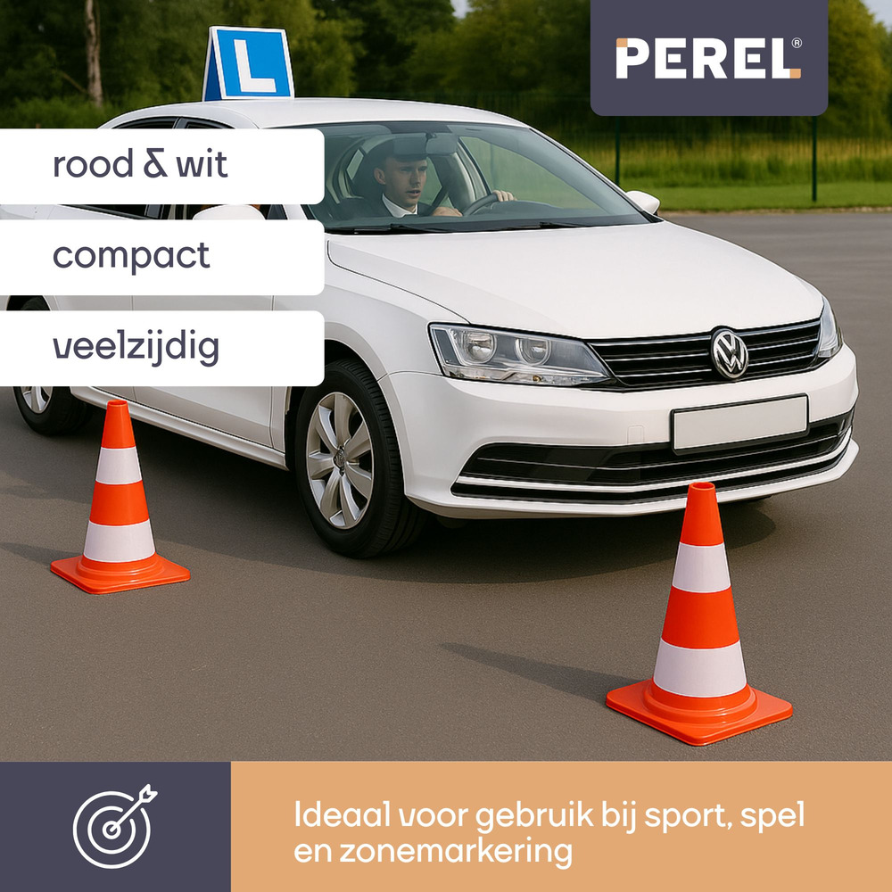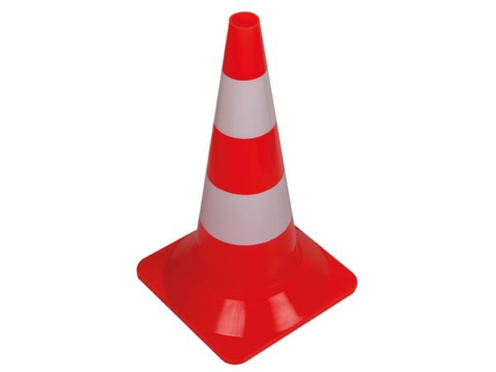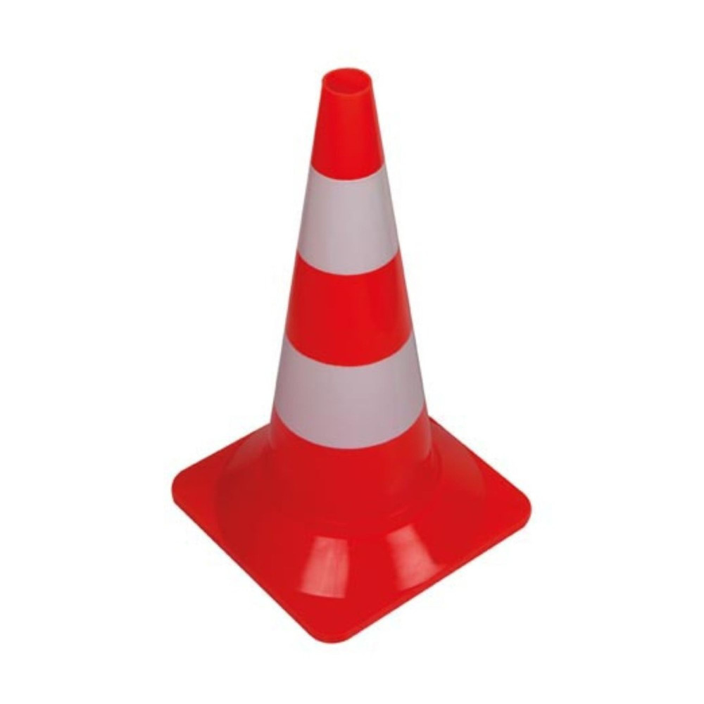 The red and white signaling cone, standing at 50 cm, offers stability and versatility for various applications. Its durable design ensures reliable zone demarcation in schools, sports clubs, driving schools, or construction sites.