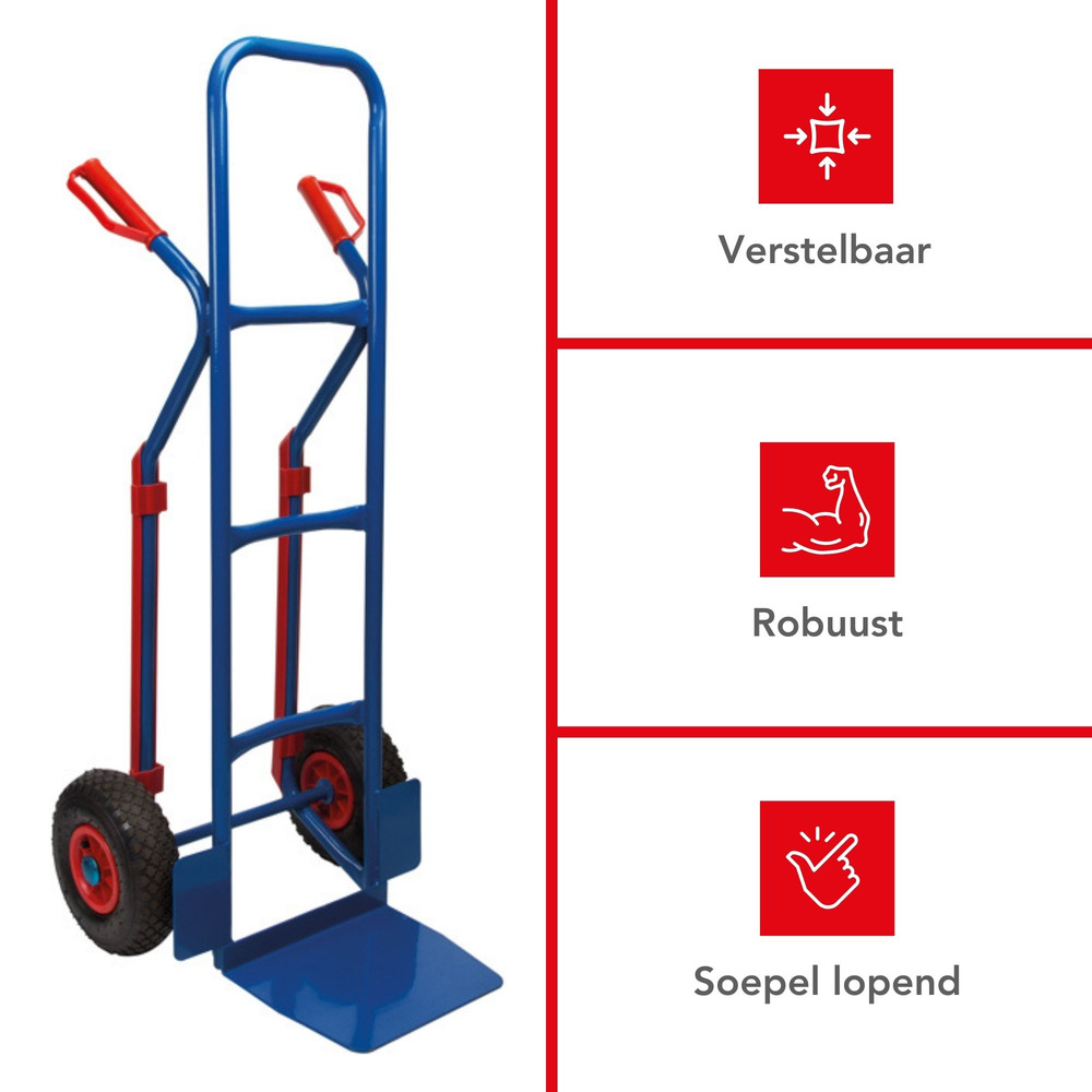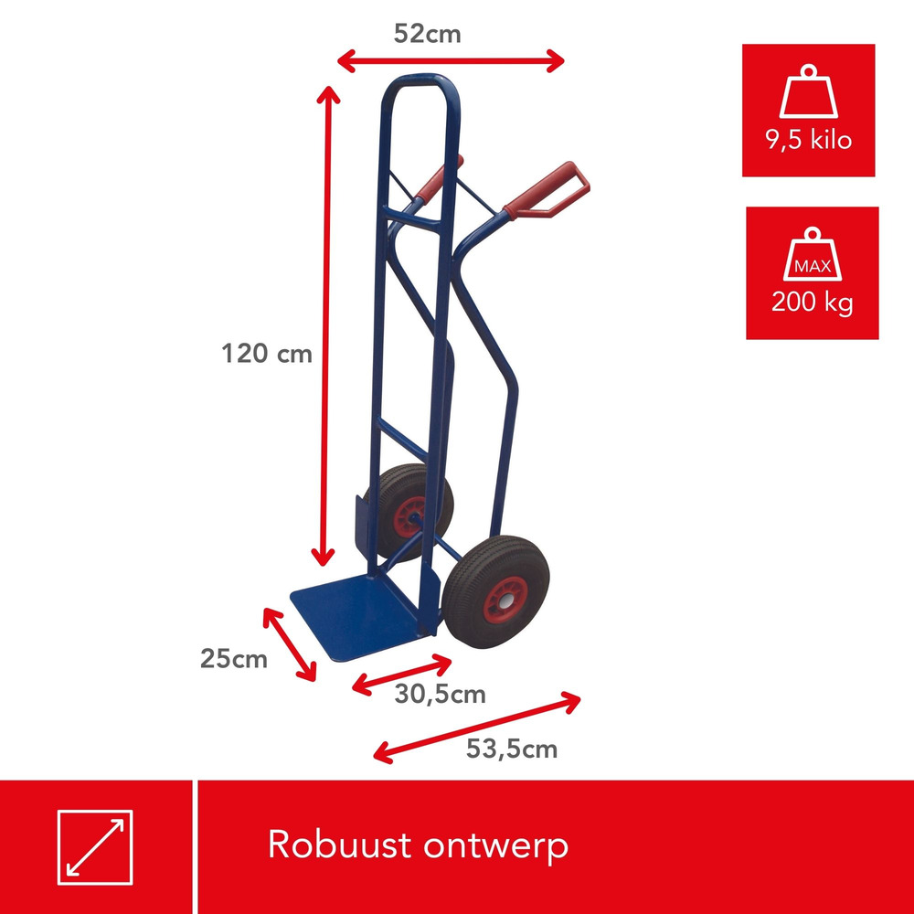 Experience effortless mobility with this robust steekwagen, capable of handling up to 200 kg. Its solid frame ensures durability, while the non-slip grip offers optimal control during transport.