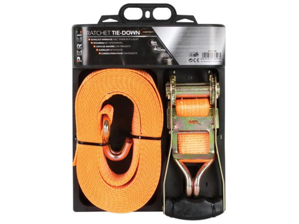 Constructed from high tensile polyester webbing, it resists wear and tear. The steel ratchet buckle allows for effortless tensioning, making it ideal for heavy-duty transportation, securing cargo, or industrial use.
