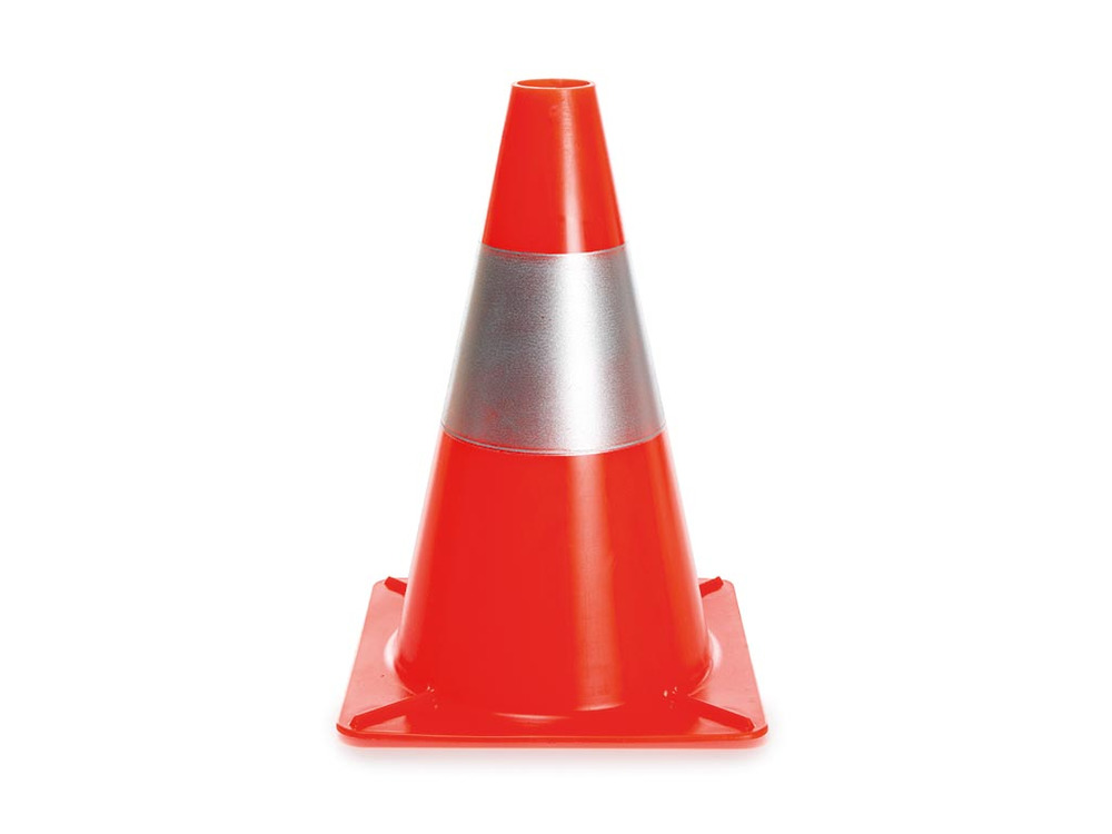 Rood/zilveren reflecterende kegel - 30 cm. Verkeerskegels, ook wel pylonen of heksenhoeden genoemd, worden gebruikt om een straat af te zetten, bij pech of een ongeval, in de bouw of wegenbouw.